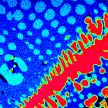 Phase maps can be constructed using a number of different approaches. The easiest is to take each element map and change the the color scheme so that one is displayed only in shades of red, one in shades of green, and one in shades of blue. The maps in Figure 2 are the same as those in Figure 1, but with this new color scheme. |